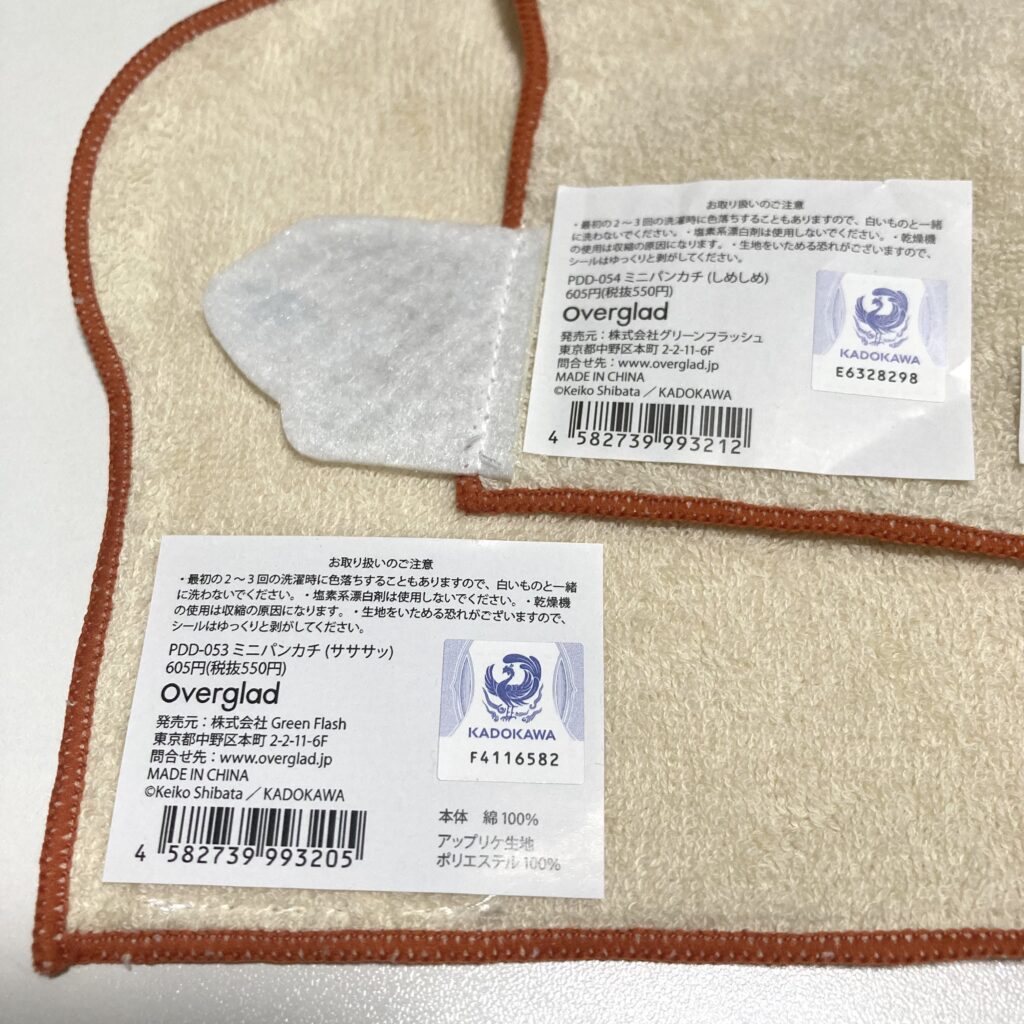 ハンカチは10種類あり、全てキャラクターの形に沿ったデザインになっています☝️