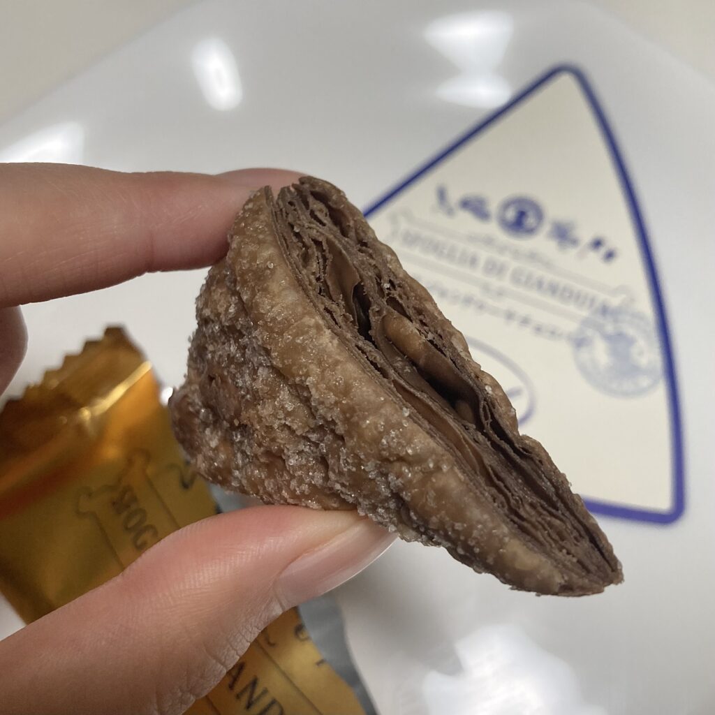 サクッとしたパイ生地に、ジャンドゥーヤチョコレートがサンドされていました🍫♡